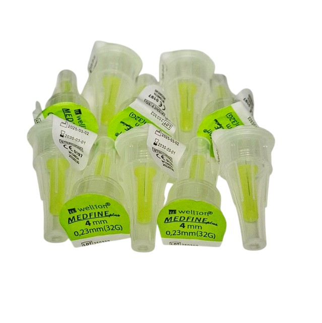 Голки Wellion MEDFINE Plus (32G) 0,23 мм x 4 мм призначені для використання з інсуліновими шприц-ручками для легкого і комфортного введення інсуліну хворими на цукровий діабет.